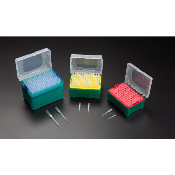 • Multiple sizes are available, including extended length tips (10µL et 100µL)  to allow better access to the bottom of test tubes, reagent bottles, flasks and other vessels
