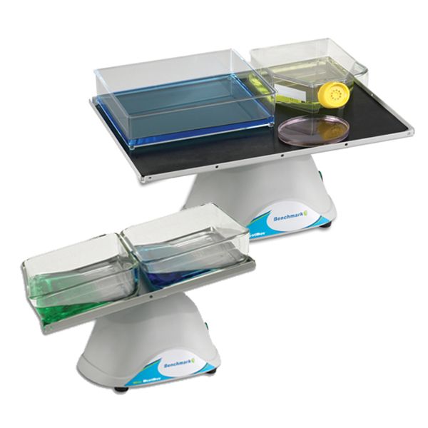 • Tilt angle and speed have been optimally set for gentle, but thorough mixing in gel trays, boxes and other flat vessels.
