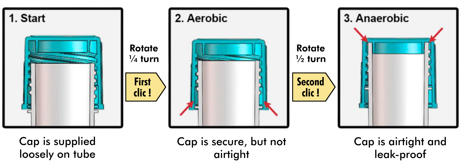 The ability to adjust the cap without fully removing it helps minimize handling. Unlike traditional caps that require careful loosening or full removal to allow airflow, the 2-position design offers a consistent, controlled way to ventilate or seal the tube. Fewer touchpoints mean a lower risk of contamination, especially when working in controlled environments or sterile hoods.