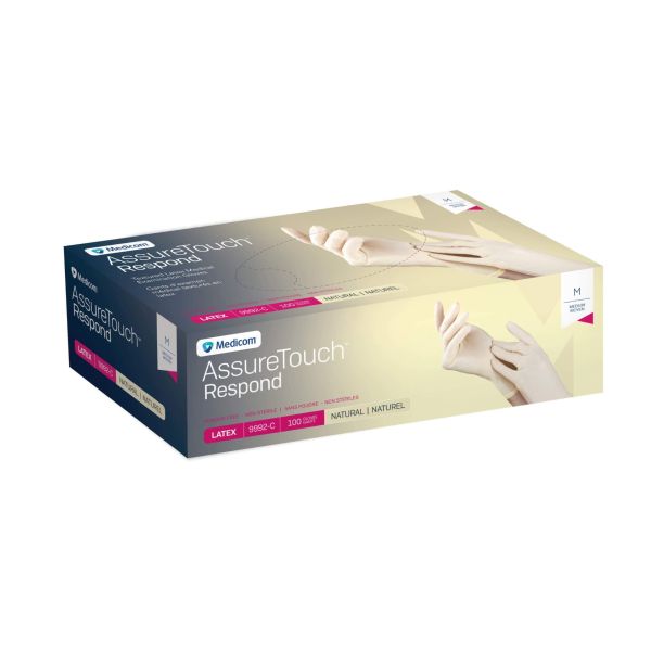 02-9992-C Medicom™ AssureTouch Respond™ Powder-Free Latex Gloves, Medium 100/Box