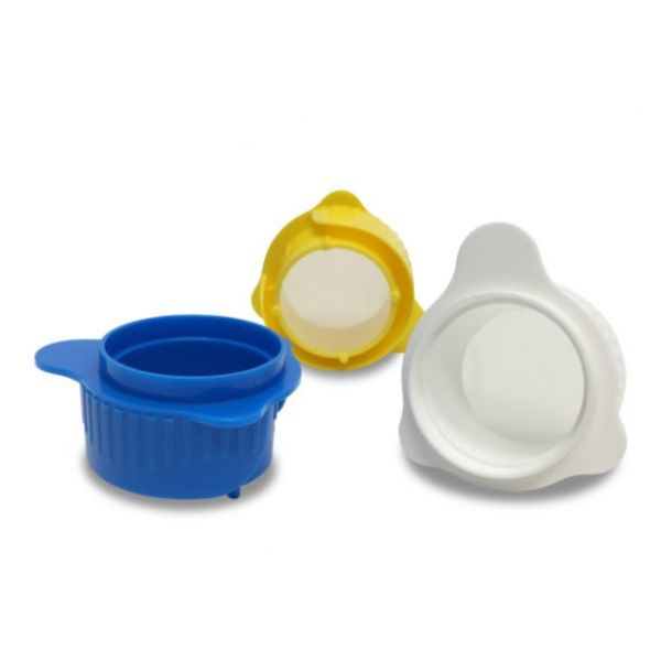 • A polypropylene frame supports a nylon mesh that is available in three color-coded porosities: 40μm (blue), 70μm (white), and 100μm (yellow).